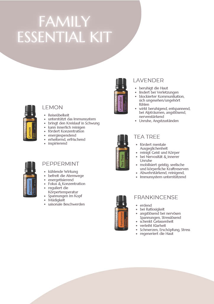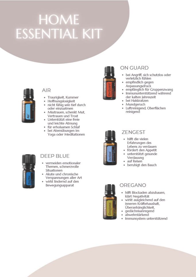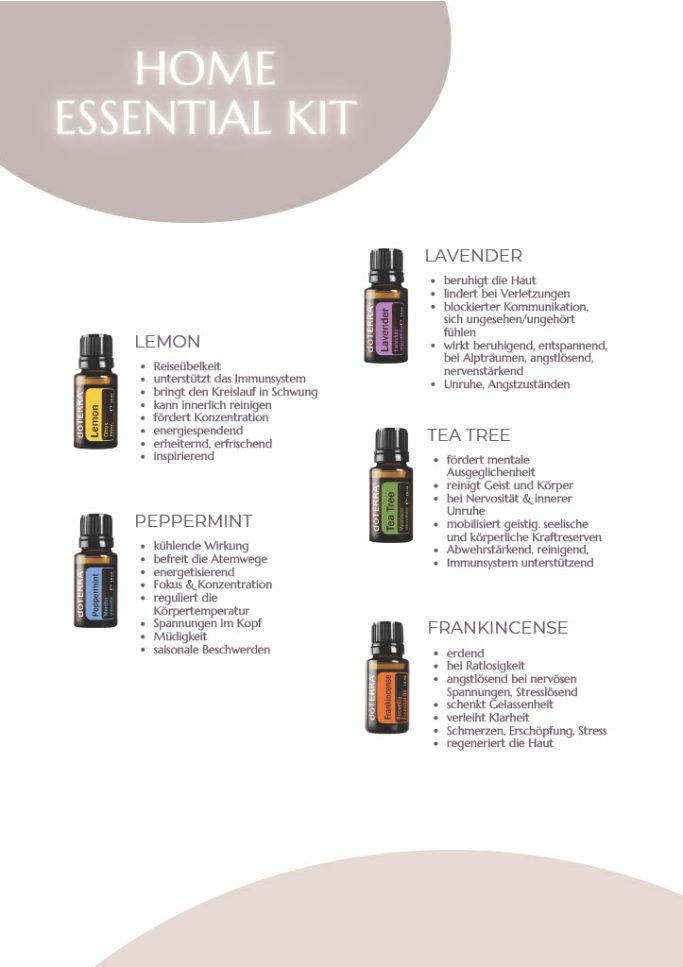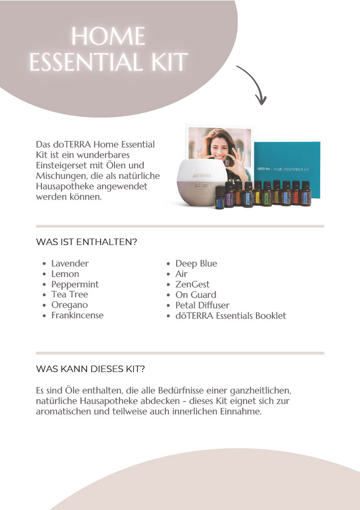 Das doTERRA Home Essentials Kit ist wie ein natürliches Erste-Hilfe-Set für die ganze Familie. Zehn kraftvolle Öle begleiten dich durch Alltag, Emotionen und kleine Beschwerden – sanft, vielseitig und wirkungsvoll. Für mehr Achtsamkeit, Vertrauen und Verbindung – Tropfen für Tropfen. 🌿💧