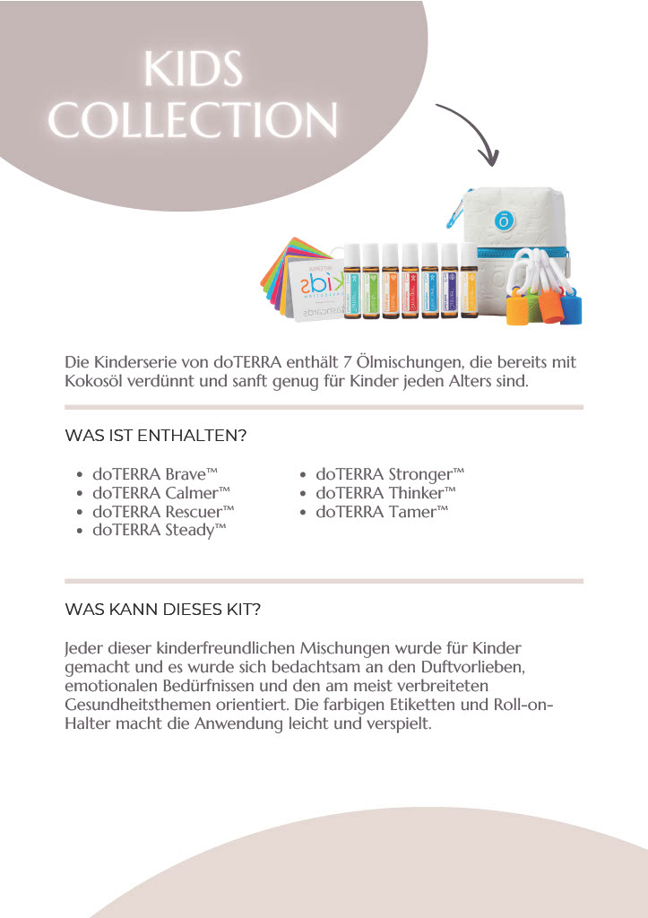 Die doTERRA Kids Collection ist wie eine kleine duftende Schatzkiste – voll mit sanften, vorverdünnten Ölmischungen, die speziell für Kinder entwickelt wurden. Ob Mut, Ruhe, Fokus oder Trost: Jedes Öl spricht die Sprache der kleinen Herzen und hilft, Emotionen liebevoll zu begleiten. Natürlich. Sicher. Kindgerecht. 💛🌿